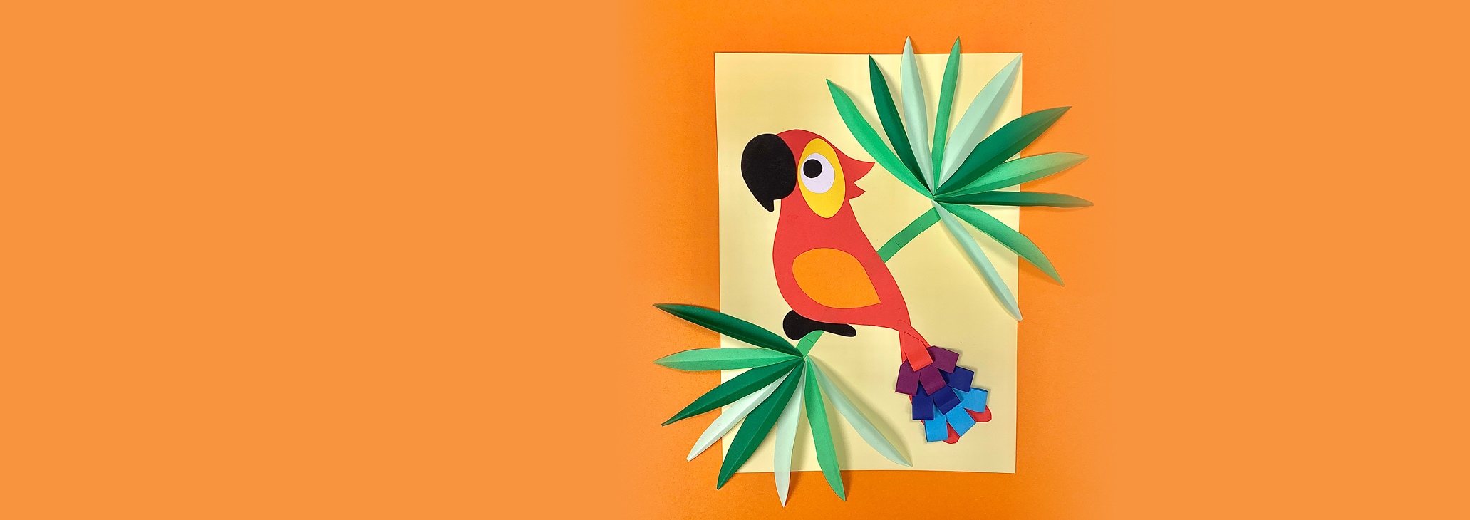 На этот раз мы сделаем яркую аппликацию с разноцветным попугаем.