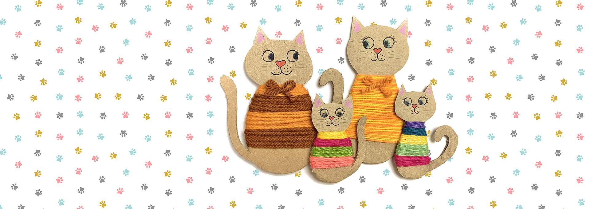 Поэтому предлагаем укутать ваших котят в тёплые кофточки. Каких ещё котят? А вот тех, что сделаем на мастер-классе. Для ПрОДЕЛОК используем картон, пряжу, клей, ножницы и фломастеры.
